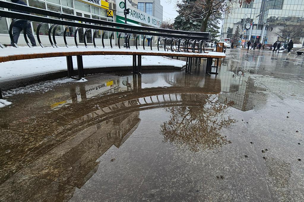 Acum, cum au fost precipitații și temperatura este la limita înghețului, imaginea este și mai deplorabilă... Băncile unde oamenii ar trebui să se așeze și să se odihnească sunt în mijlocul băltoacelor, care au și înghețat, imaginea fiind spectaculoasă, dar dezolantă...