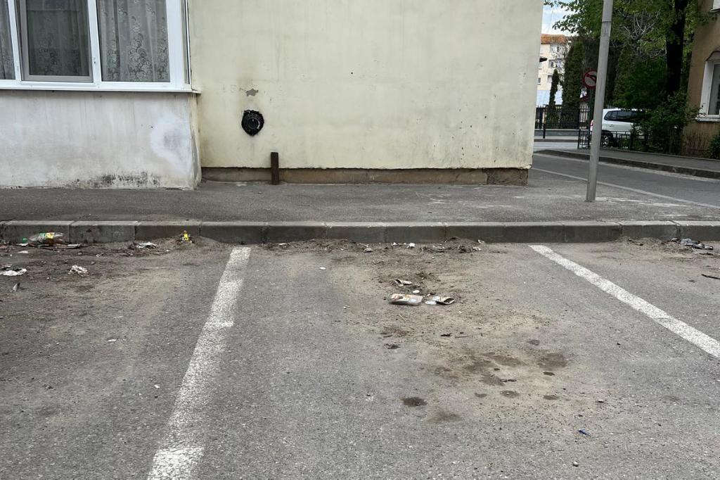 După cum se poate lesne observa din fotografii, dar după cum ne-a precizat și cititorul nostru, a vrut să scoată în evidență curățenia din această parcare, grămăjoarele acelea din dreptul fiecărui loc de parcare.