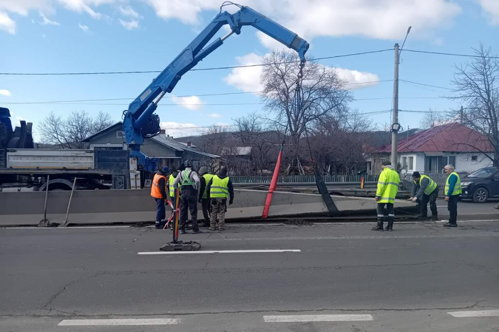 Acum, CNAIR s-a apucat de treabă... Până la noapte vor fi îndepărtate separatoarele de sens de pe DN1, din zona pasarelei, urmând ca în noaptea de joi spre vineri să fie ridicată și îndepărtată pasarela pietonală. Circulația în zonă se va desfășura sub supravegherea echipajelor Poliției Rutiere DN1.