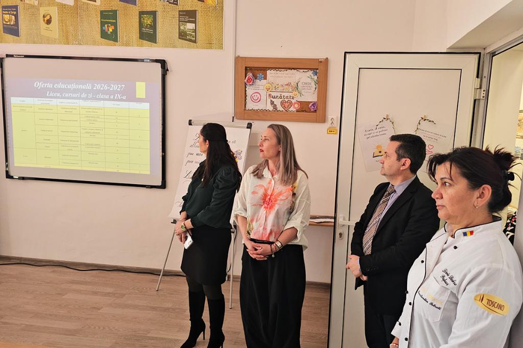 Mai întâi, elevilor le-a fost prezentată oferta educațională a liceului pentru anul școlar viitor și opțiunile pe meserii. Apoi, în partea cea mai atractivă a prezentării, elevii au asistat la câteva lecții practice. Au putut vedea cum se prepară prăjituri - cu sprijinul Cofetăriei Delice, partener al acestui liceu. Degustarea prăjiturilor și a pralinelor a fost cel mai dulce moment al vizitei lor. De asemenea, a reprezentat un punct de maximă atracție simulatorul de conducere auto.