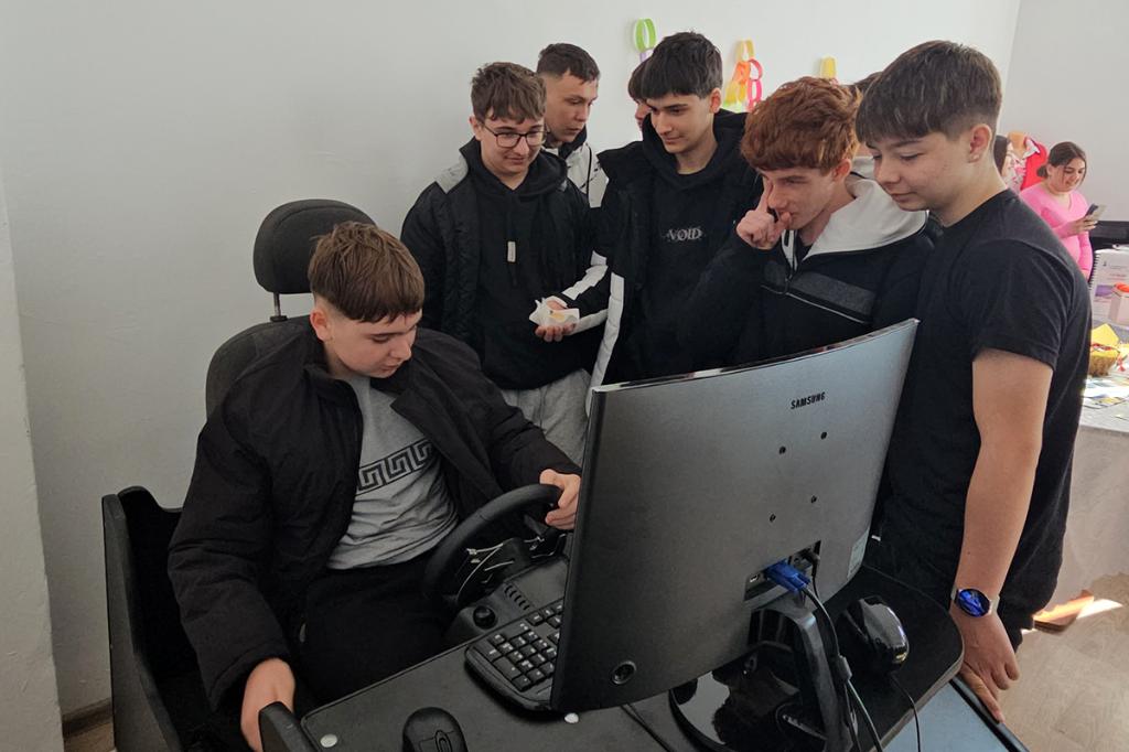 În finalul vizitei, elevii au făcut un tur al liceului, inclusiv prin laboratoare.
